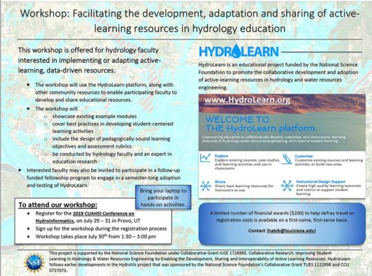 Join us for a HydroLearn workshop at the 2019 CUAHSI Conference on Hydroinformatics in Provo, [...]