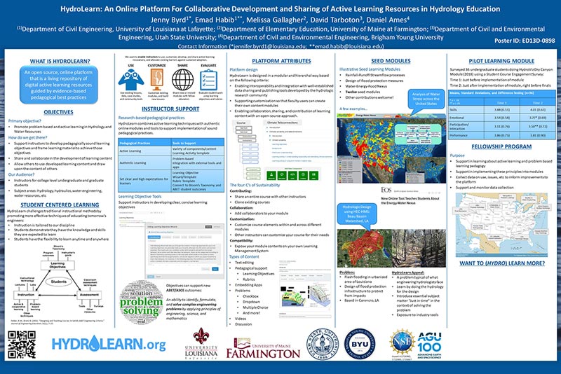 The HydroLearn project is supported by the National Science Foundation (NSF) under collaborative awards DUE-IUSE 1726965, 1725989, and 1726667; I-Corps 1644493; TUES 1122898; and CCLI 0737073.  Any opinions, findings, conclusions, or recommendations expressed in this material are those of the authors. and do not necessarily reflect the views of the NSF.